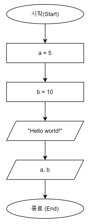 먼저 a와 b라는 변수에 각각 5, 10의 값을 넣도록 합니다.