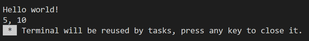 printf("%d, %d\n", a, b);