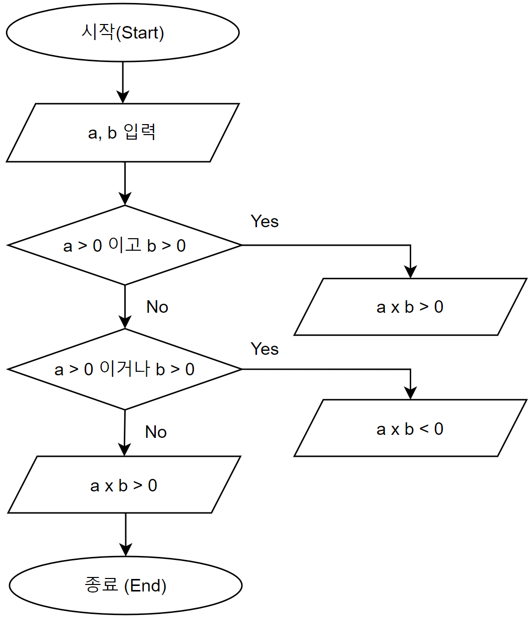 좀 억지스럽긴 하지만, 논리 연산자를 이용하여 순서도를 다음과 같이 그려보았습니다.