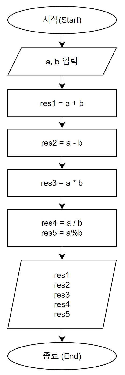 산술연산자를 사용하여 다음과 같이 순서도를 만들었습니다.