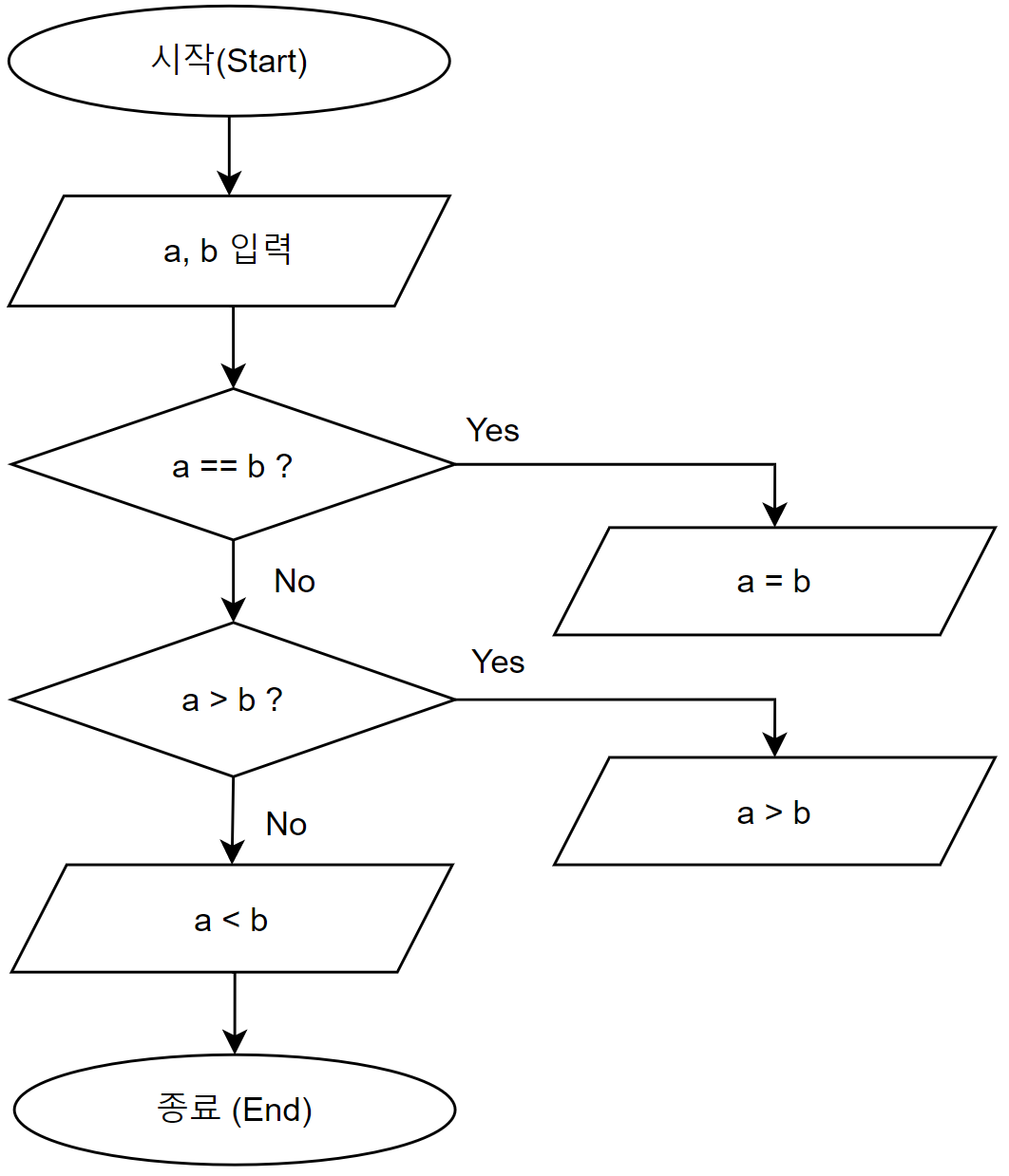 관계 연산자를 이용하여 다음과 같이 순서도를 만들어 보았습니다.